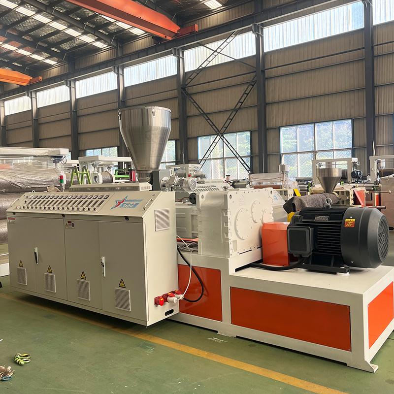Estrusori bivite conici, dotati di varie specifiche di stampi e attrezzature ausiliarie prodotte daQingdao Eaststar Plastic Machinery Co., Ltd.,può trasformare direttamente la polvere di PVC in prodotti di plastica come tubi, lastre e profili.