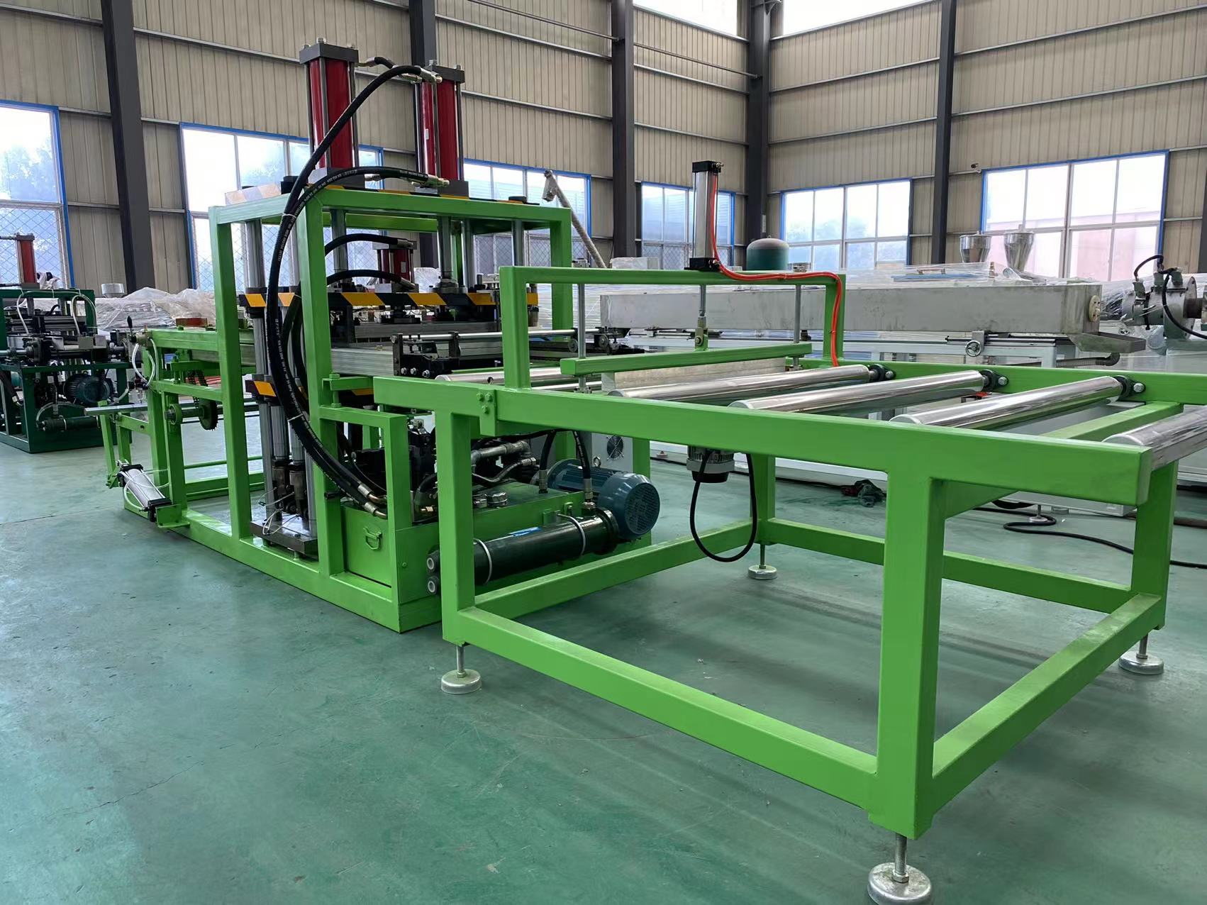 The first part produces root control sheets. Root control sheets can be made of PET, PVC, or PP. The specific raw material used depends on the local geographical environment and the customer's acceptance level. Qingdao East star Plastic Machinery Co., Ltd. is a professional manufacturer of plastic sheet and board production equipment. Root control sheets are one of our main products. We match the appropriate root control sheet width to the desired sheet width. The production process includes plastic melting in an extruder, sheet blank production in a mold, solidification in a cooling bracket, and a stable traction speed from the traction machine, making the entire production process smoother. The sheet is then wound into the appropriate length according to the customer's needs.