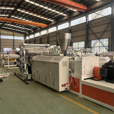 La materia prima miscelata entra nel nostro estrusore bivite attraverso una coclea. Sotto l'azione riscaldante della vite, la plastica si scioglie. Il PVC fuso passa attraverso una matrice a T per formare un foglio grezzo.