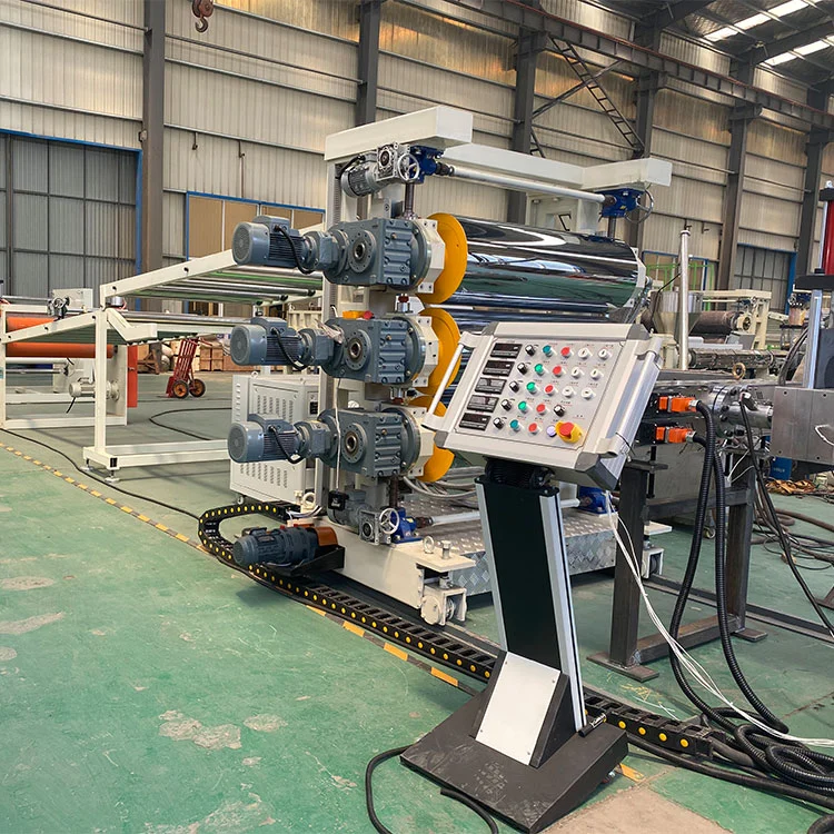 PP/PE Sheeleer Sheet ExtrUder Machine è costituita da un estrusore, seguito da un foglio, un calendario a tre roll, una staffa di raffreddamento, una macchina da trasporto e un avvolgitore. Possiamo abbinare diverse attrezzature in base alla larghezza e allo spessore del foglio del cliente.