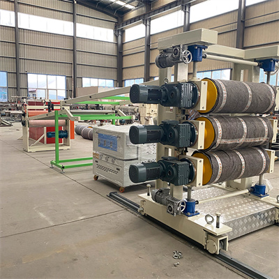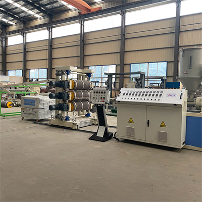 Le particelle di PS essiccate vengono trasportate alla tramoggia dell'estrusore attraverso un dispositivo di alimentazione automatico. La vite dell'estrusore scioglie gradualmente le particelle solide di PS in una massa fusa uniforme attraverso la rotazione e il riscaldamento esterno. Il materiale fuso viene spinto verso la matrice a T (canale di flusso piatto) per determinare preliminarmente la larghezza del foglio. Il film fuso entra nella calandra a tre rulli e si solidifica e si forma rapidamente. La lamiera sagomata viene trascinata a velocità uniforme dalla macchina di trazione, mentre le bave vengono rimosse dalla rifilatrice. Infine, viene arrotolato in una bobina regolare dall'avvolgitore.