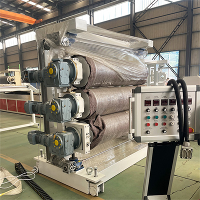 Trattore:Solitamente composto da due o più rulli, viene utilizzato per trascinare in avanti la lamiera calandrata a una velocità stabile per garantire la continuità della produzione della lamiera e cooperare con l'estrusore e la calandra per controllare lo spessore e l'accuratezza dimensionale della lamiera.